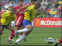 在上半场的比赛里巴西队凭借出色的个人技术以及强大的整体实力占据了比赛的主动,但“三R”组合似乎并没有发挥出预期的强大威力,浪费了不少破门机会。土耳其队则在稳固防守的同时抓住机会打对方的反击,在补时阶段,土耳其队11号哈桑.萨斯利用巴西队防守上的疏漏在禁区内接队友传球,面对对方守门员冷静将球打入。